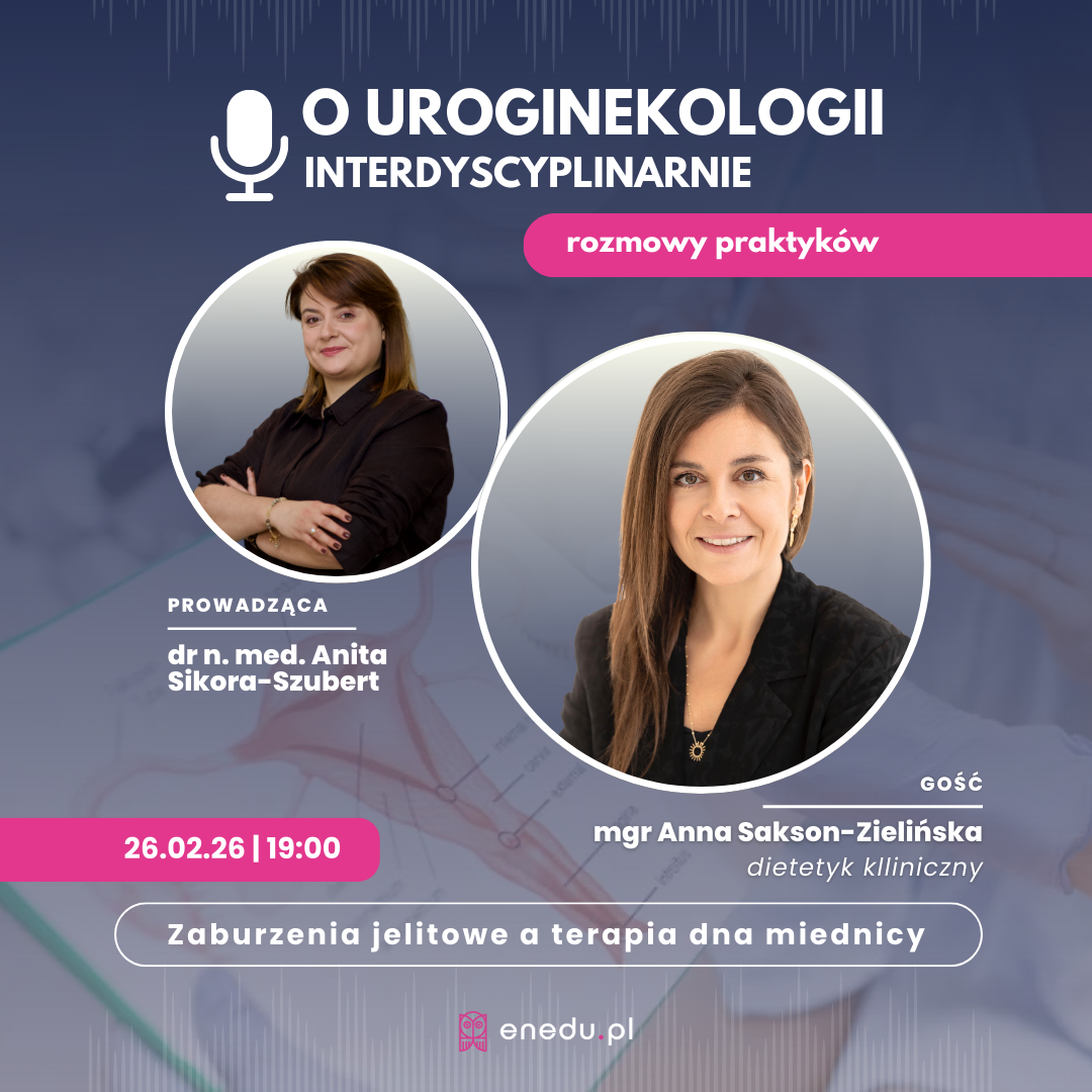 To bardzo ważny, ale wydaje się zbyt rzadko poruszany aspekt, dlatego na kolejnym spotkaniu dr n. med. Anita Sikora - Szubert razem z dietetyczką mgr Anną Sakson-Zielińską z AnMa Centrum Dietetyki porozmawia o tym, co w praktyce dzieje się na styku jelit i dna miednicy: